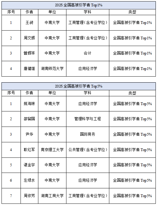 近日,中国知网下属的中国科学文献计量评价研究中心(出版智库)重磅发布“2025全国高被引学者”名单。研究院团队共有11位专家学者入选,4人跻身“全国高被引学者Top1%”,7人入选“全国高被引学者Top5%”。