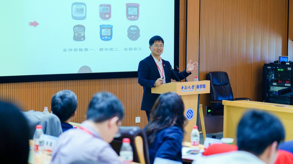 4月19日上午,南京大学张骁教授主持主题报告环节,三诺生物传感股份有限公司李少波董事长,作题为“新兴产业企业成长之道:从‘中国血糖仪的普及推动者’到‘全球领先的糖尿病数字管理专家’”的报告,分享企业赛道选择、技术创新、全球化布局与数字化转型实践。华东理工大学阎海峰教授、北京大学易希薇副教授、东北财经大学韵江教授、哈尔滨工业大学王铁男教授参与了讨论交流。